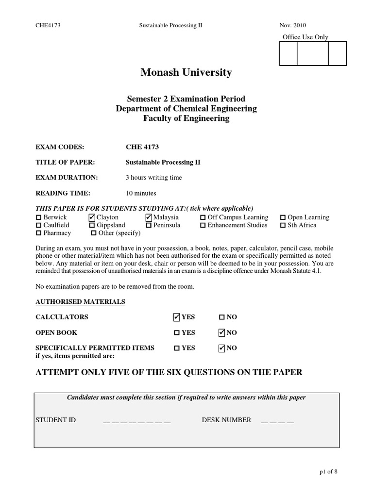 CHE4173 Sustainable Processing II Nov. 2010 p4 of 8