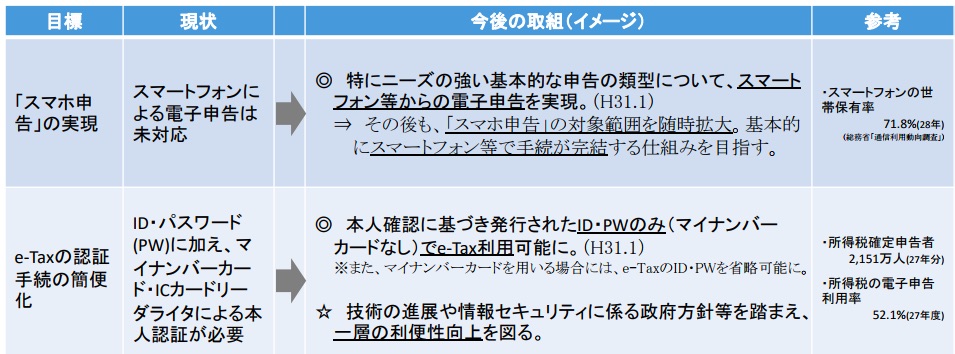 なお、簡易な内容の申告などをスマートフォンやタブレットから行えるようにすることも検討しています。