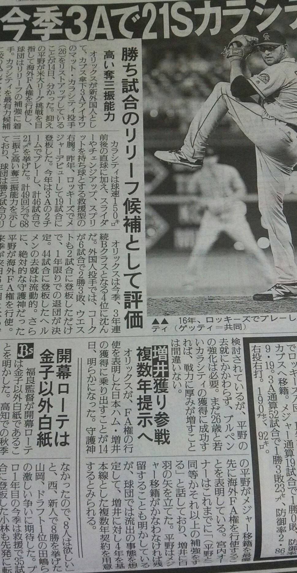 大和3年増井4年とかストーブリーグでオリックス強すぎやろ