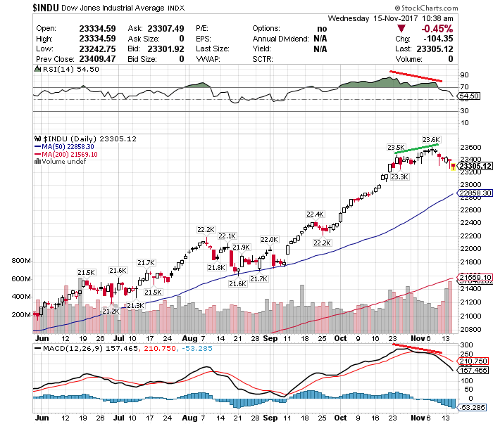 米税制改革の行方が、ダウ平均急落の引き金になるかもしれない。