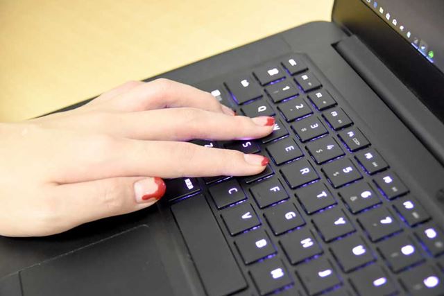 もうひとつ、排熱をキーボード面から行う点も大きな特徴。実際に、The New Razer Bladeでゲームをプレイすると、2基のファンが回り出して左右の手のひらに風が当たった。このファンは、底面から吸い込んだ空気を、キーボード面と側面の排気孔へ排気する仕組みになっている。一見すると不快なようにも見えるが、実は手のひらが常に乾燥することで、汗でキーボードがすべる心配がなくなるので、ゲーマー的には快適なのだ。ミスタッチを減らす効果も期待できる。