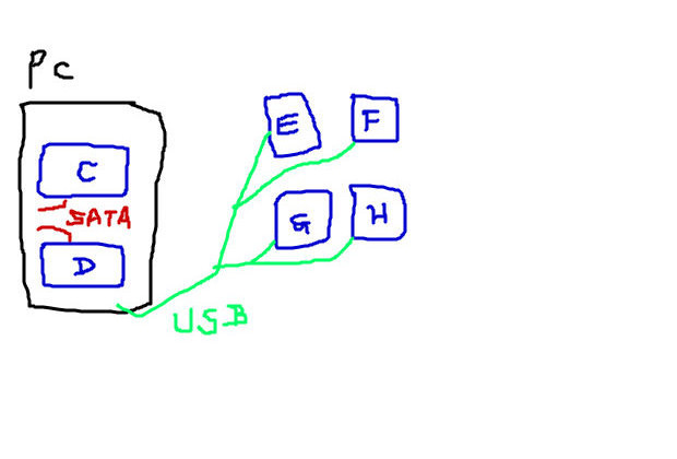 こんなふうな構成でPCを使っていた。(今はお絵描きソフトも使えないのでひどい絵になっている。)