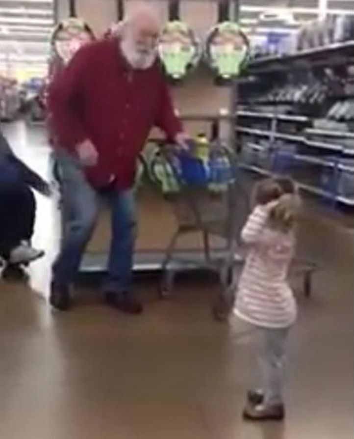 スーパーで立っているおじいさんに駆け寄る女の子。