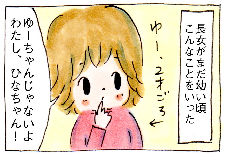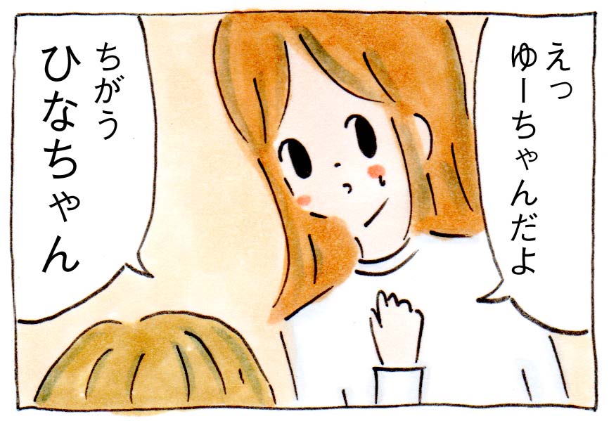 「ゆーちゃんだよ」といいきかせても、「ちがう、ひなちゃん」といってゆずりませんでした。