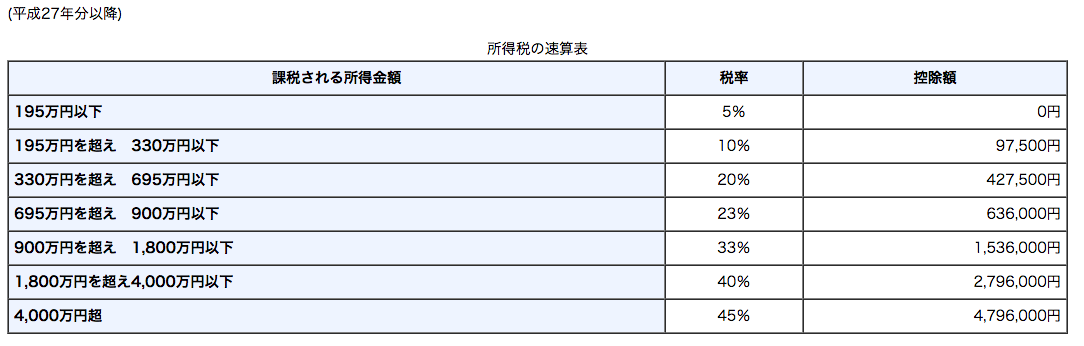 所得税早見表。これに+住民税10%