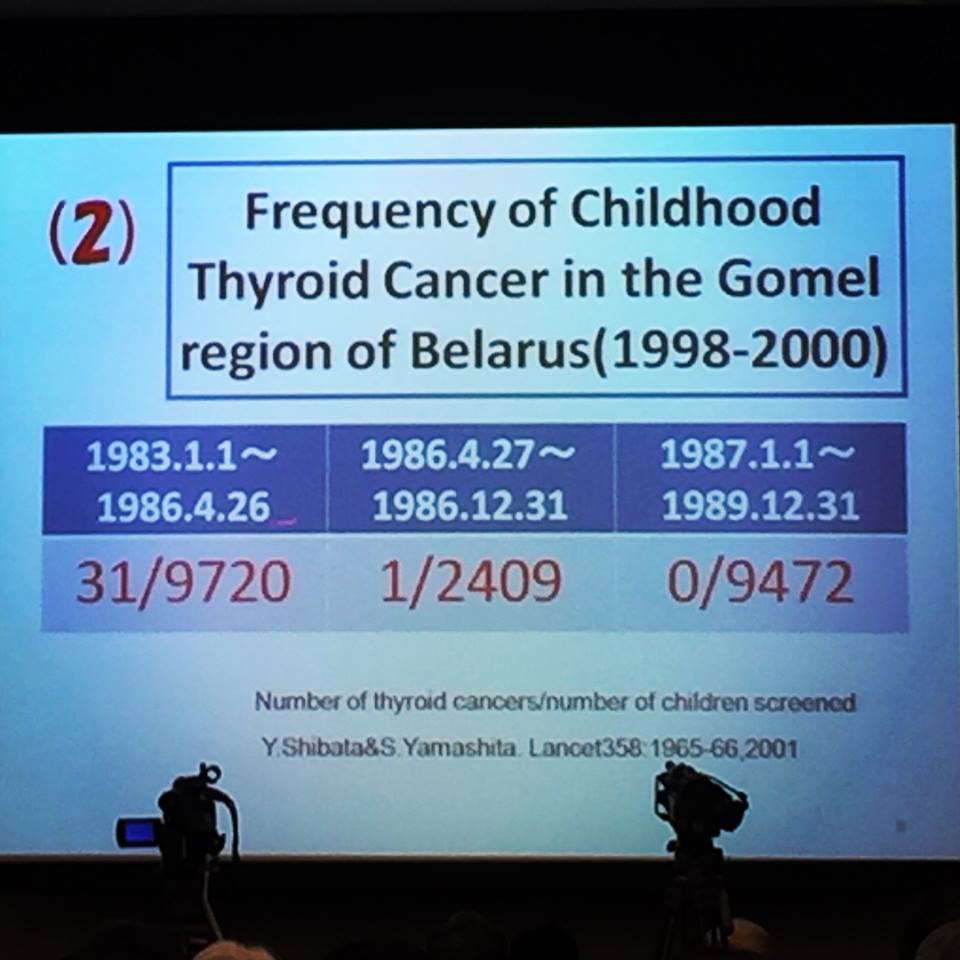 甲状腺ガン(乳頭ガン)は、本来、予後が良いのだが、チェルノブイリ原発事故後の調査では肺転移が多い傾向が見られたという、医師である国会議員からの話もありました。