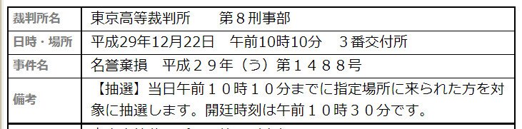 傍聴券の抽選 10:10までに裁判所前3番交付所 に集合。