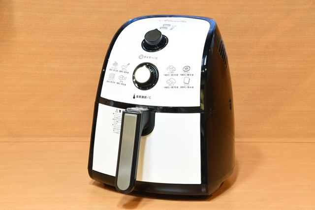 ショップジャパンのノンオイルフライヤー「カラーラ」。サイズは約260(幅)×315(高さ)×330(奥行)mmで、重量は約4kg