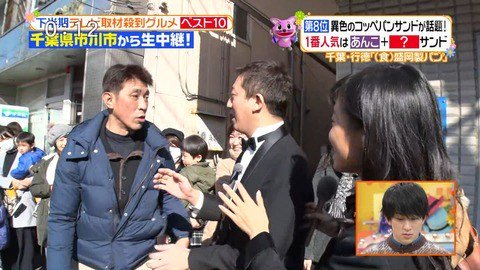 この日、高橋と小島は千葉県市川市、行徳駅前にある1日1000個売り上げるコッペパン専門店から生中継を実施。店の前に行列ができており、最後尾にいた2人がレポートを始めた際、カメラのフレームの中に何かをつぶやきながら男が姿を現した。