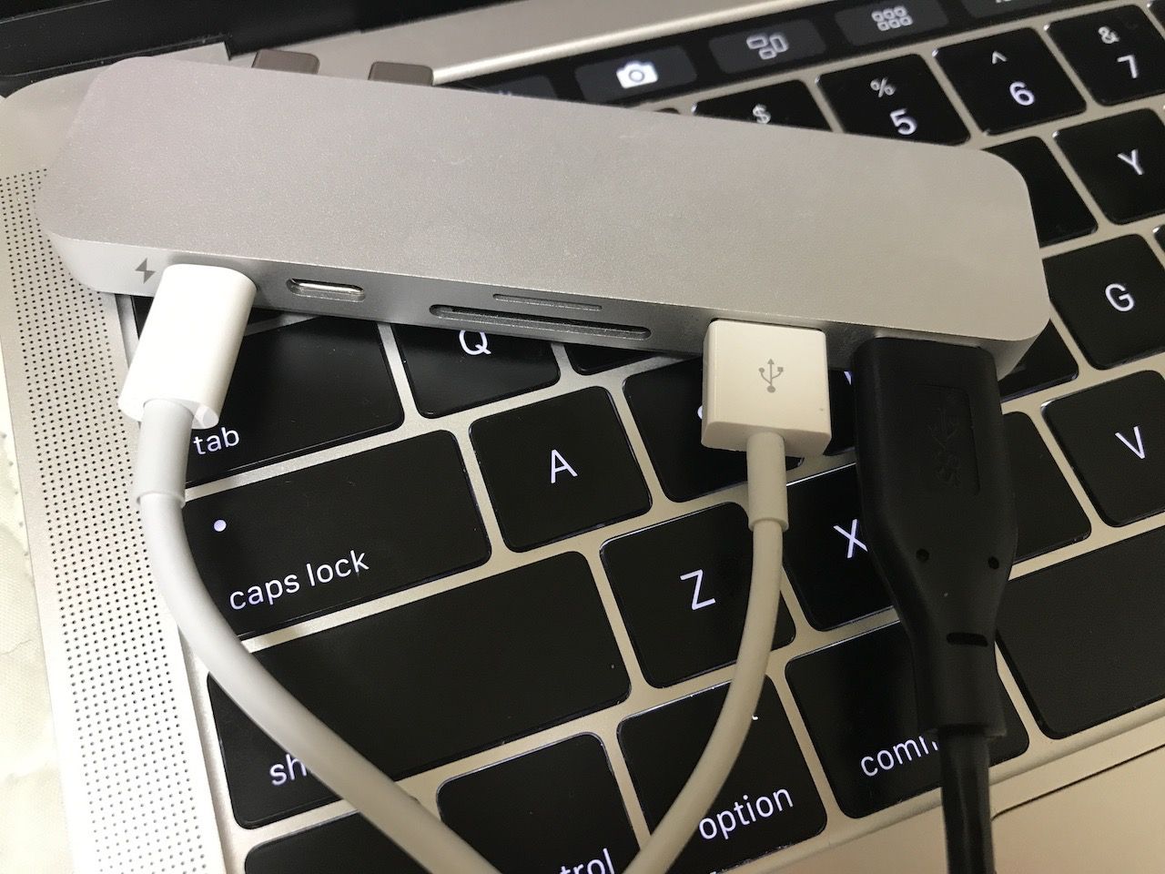 MacBook Pro民には必須のアイテム。たくさんのHubが販売されていますが、Thunderbolt 3対応は中々無かったりします。これは1ポートがTb3として残るので、かなり便利。そして色もMacBook Proと同色でとてもお洒落。