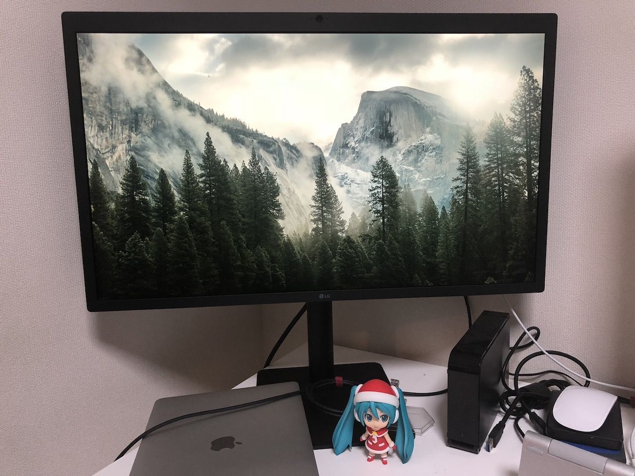 MacBook Pro専用となってるLG 5Kディスプレイ。とっても綺麗だし、Thunderbolt 3一本で給電もできちゃうところが良い。