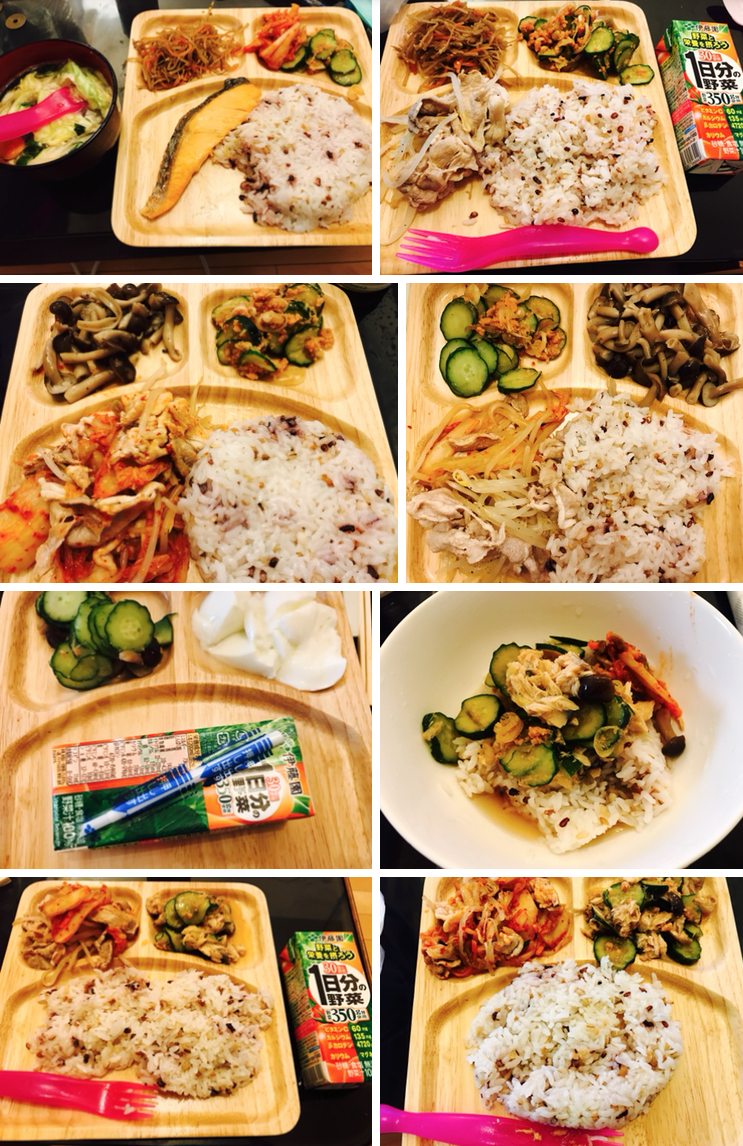 夏場は、冷汁が大活躍した。意外と食べられるんだなと感じられると思う。それぞれ400kcal程度。油を使わないことと、低カロリーなご飯(150kcal)を使うことで、意外と美味しい食事はできる。次で述べるが全ての食事を記録すると、食事習慣が可視化できる。でも、レコーディングダイエットとかいうと、脳裏をおたくの王様がよぎるので言わない。