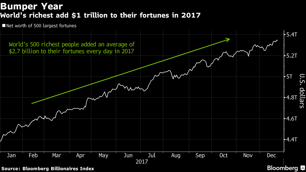 原題:World’s Wealthiest Gain $1 Trillion in ’17 on Market Exuberance(抜粋)