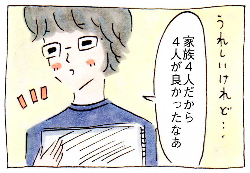 家に帰ってそれを夫に見せると「(金星さんの)家族が4人だから、4人が良かったなあ」といいました。