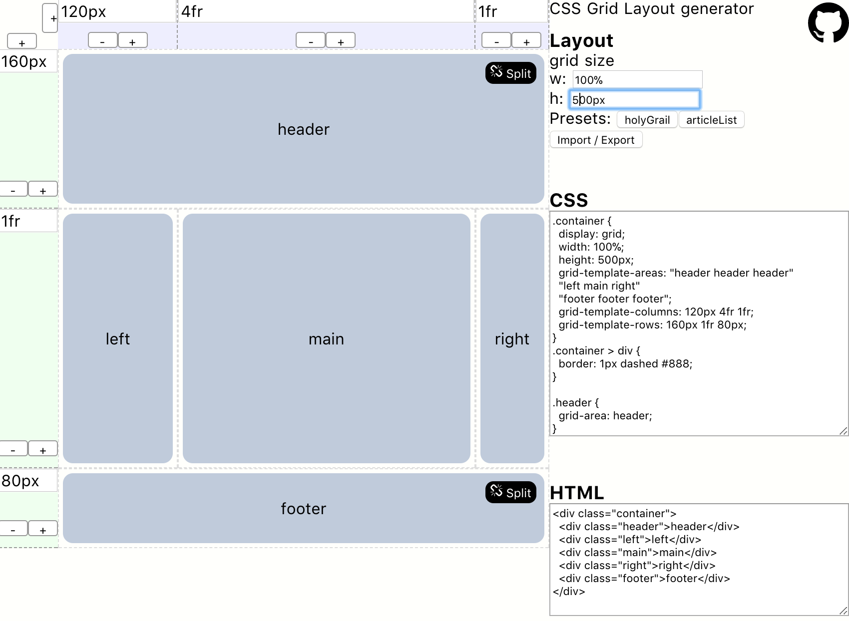 mizchiさんのCSS Grid Layout GeneratorをElmでクローンを作っている(記事)というのを見て、関数型すごいなあと思いつつ、中身のロジックは置いといて単に見た目同じようなものをVueで作るならどのくらいで出来るかなと興味が湧いたのでベンチマーク的に目コピを試してみました。
