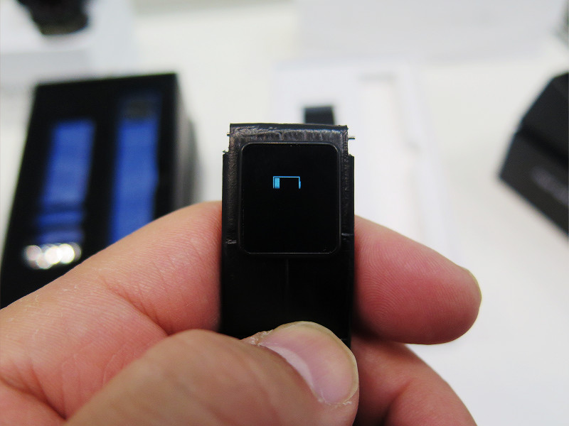 バンド交換が可能な腕時計であれば、どんな腕時計にでも付け替えて利用することが可能とのことで、写真を見るとわかるように見た目には完全に腕時計に使う交換用バンドなのですが、腕に装着したときのちょうど文字盤の下にくる部分に0.42インチの小さいディスプレイがあります。