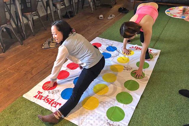 ツイスターは、1965年にアメリカで生まれたパーティーゲーム。ルーレットで指定された位置に手足を置いていき、誰が最後まで倒れずにいられるかを競います