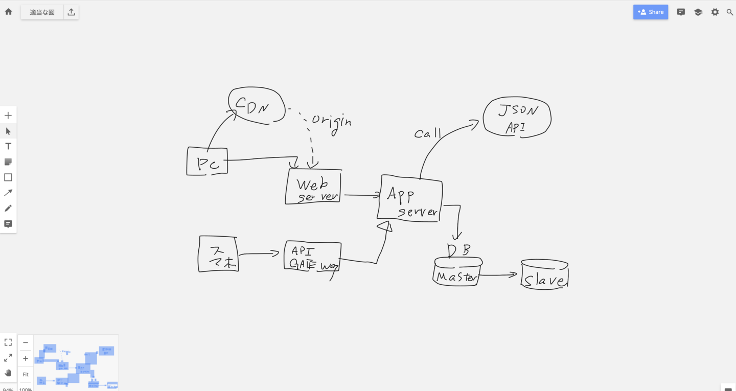 このペンタブレットを用いて、realtime boardに図を書くとこんな感じになります。(書かれている図は完全なデタラメなので、軽く流してくださいw)