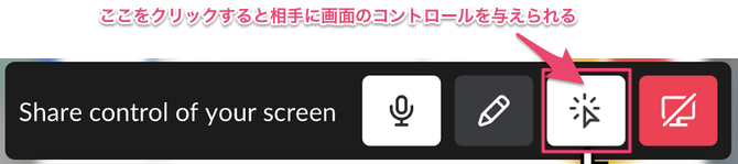 Slackには、画面共有をしている相手に、画面の操作権限を与えることもできます。