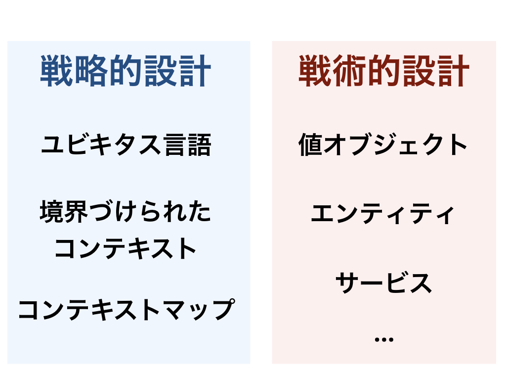 ドメイン駆動設計では、実践するために役立つさまざまな手法が出てきます。これらは主に戦略的設計と戦術的設計の2つに分けることができます。
