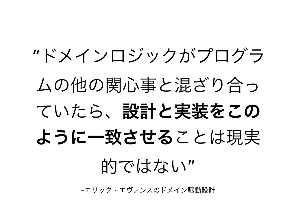 「ドメインロジックがプログラムの他の関心事と混ざり合っていたら、設計と実装をこのように一致させることは現実的ではない」