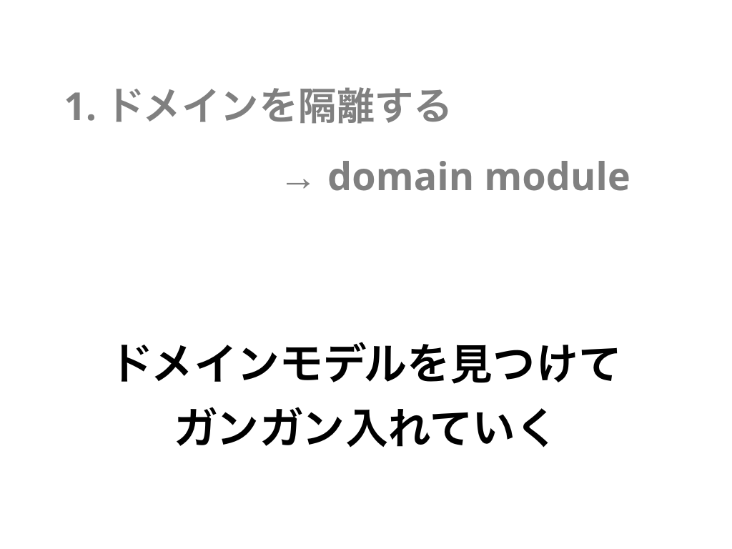「ビジネスロジックをドメインモデルとして隔離する」ということだとお話しました。