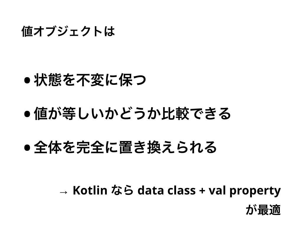 ドメイン駆動設計では、値オブジェクトを不変にすることを勧めています。