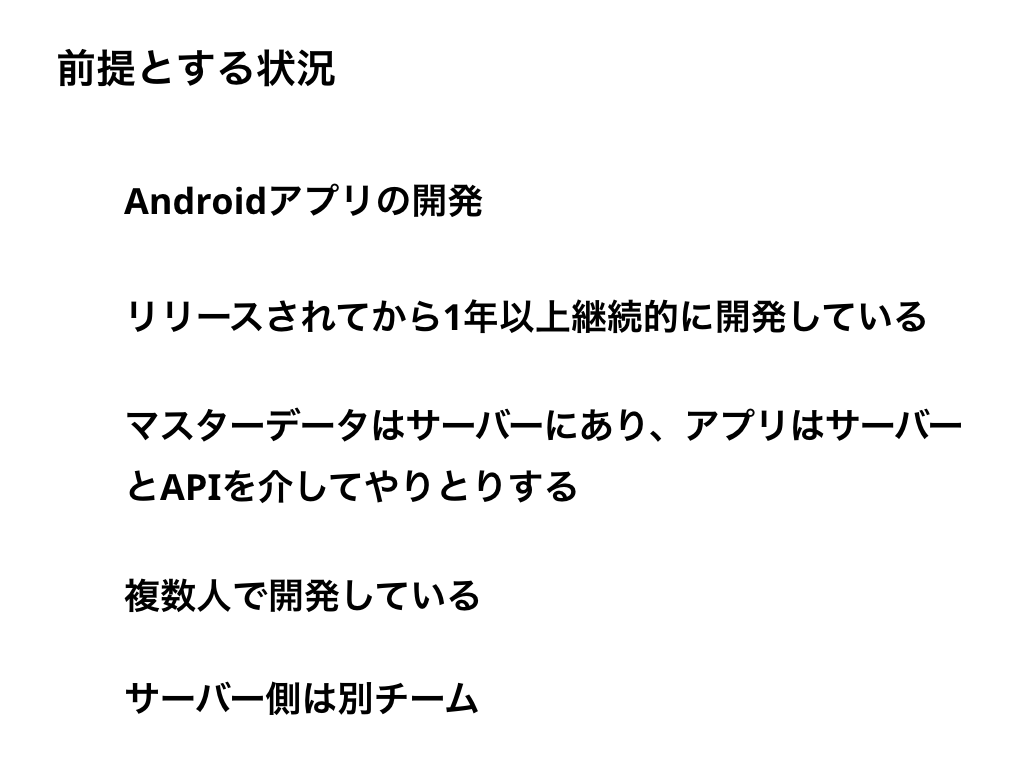 まず、Androidアプリの開発での話です。iOSアプリやサーバーサイドの開発には参考にならない可能性があります。