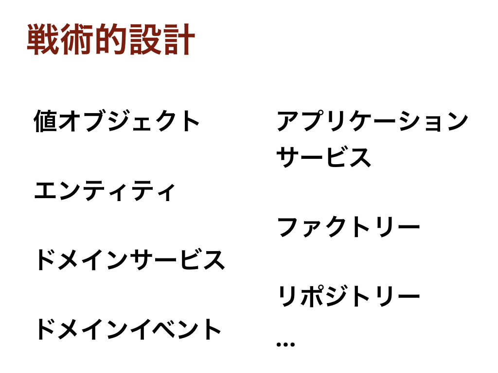 戦術的設計としてたくさんパターンが紹介されているのですが、これらを取り入れなくても、ドメインモデルをうまく表現した実装ができるなら、それはちゃんとドメイン駆動設計です。