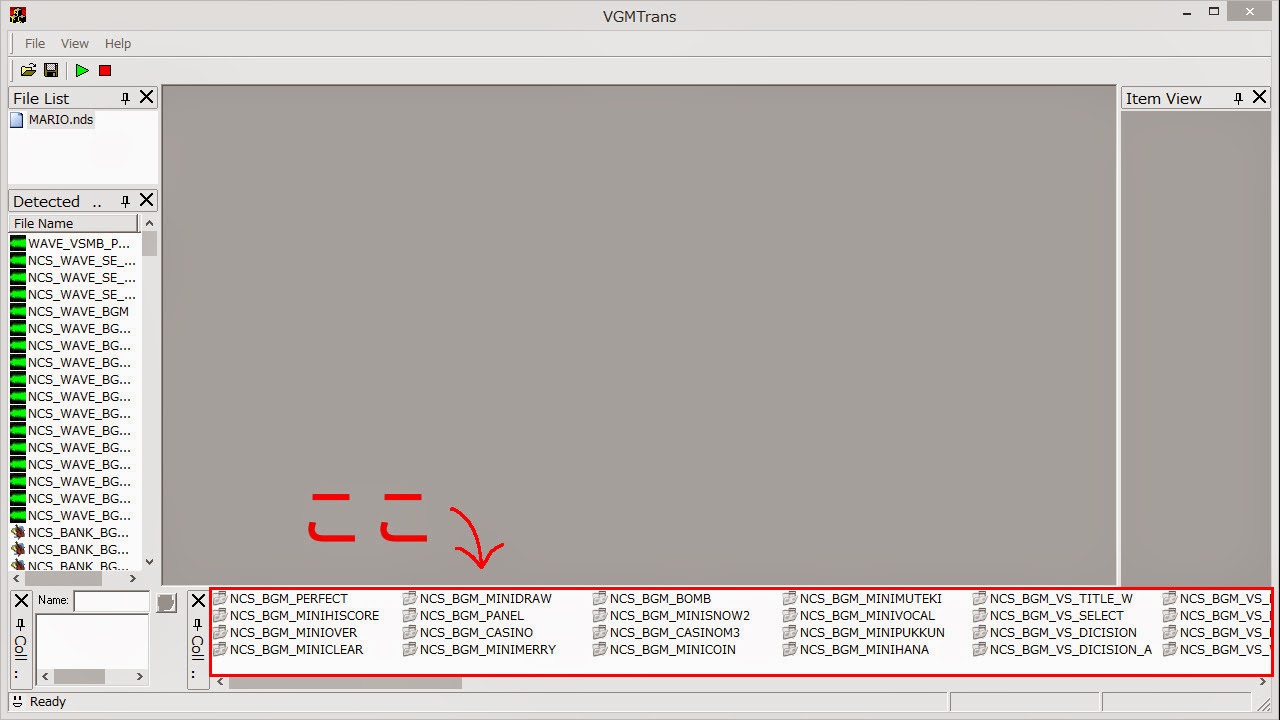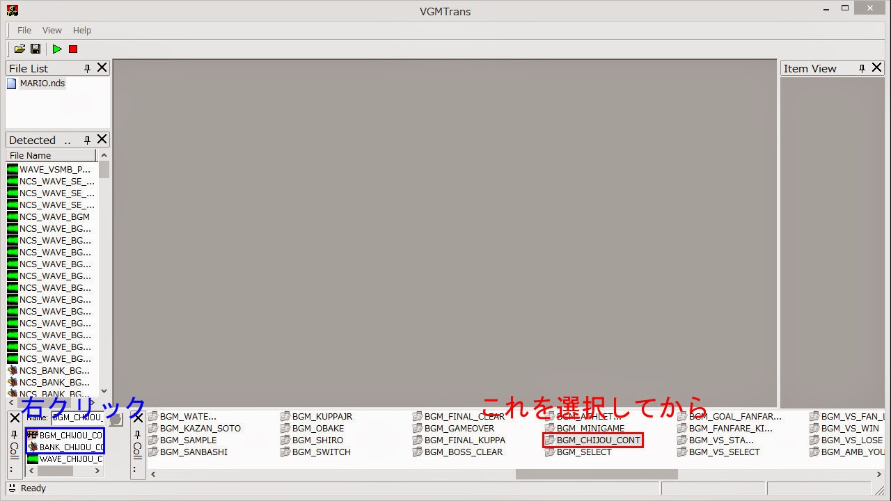 なんかたくさん表示されたと思いますが、ウィンドウの下の「NCS~」と書かれたものがいっぱいあるところから「BGM_CHIJOU_CONT」を見つけ出してください。