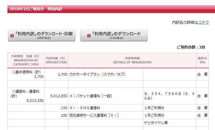 ドコモから500万円の高額請求が来ました(恐)電話でお問合せたところ、正常だそうです。単価は1GB辺り60万円ほど。電話用にしか使ってなかったのに、何かしらでネットにつながってこの金額って怖い・・・。皆さん、気を付けて。