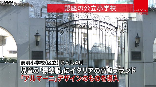東京・銀座の中央区立泰明小学校が、イタリアの高級ブランド「アルマーニ」にデザインを依頼し、最大約8万円の標準服の導入を決めたことを巡り、同小の児童が登下校中に通行人らから服をつままれるなどの嫌がらせがあったことが区や同小への取材で分かった。