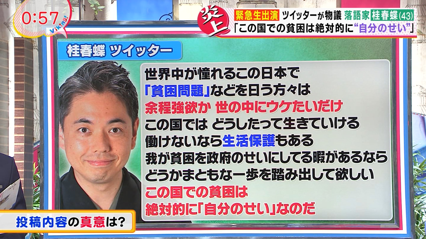 貧困のハードルが低いのに文句言ってるやつはこの噺家を叩くだろうな