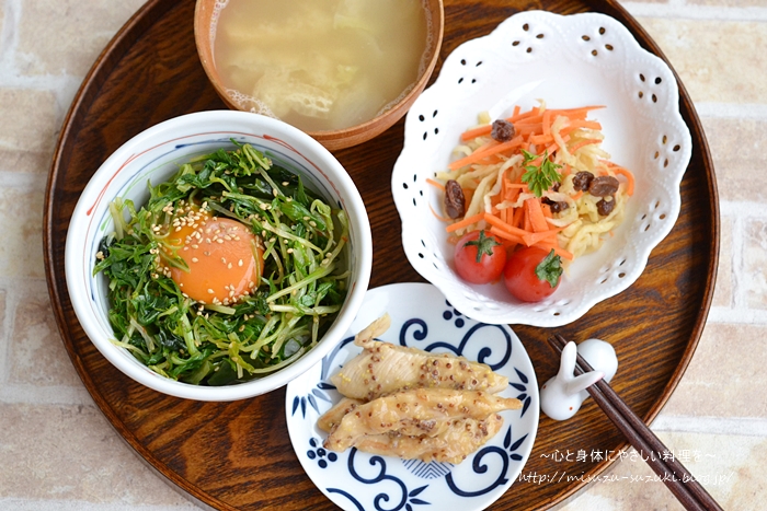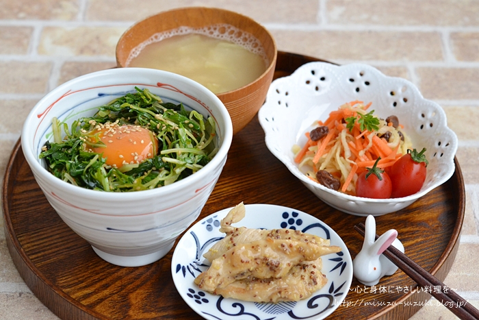 作り置きの『水菜とわかめのピリ辛ナムル』をリメイク♪