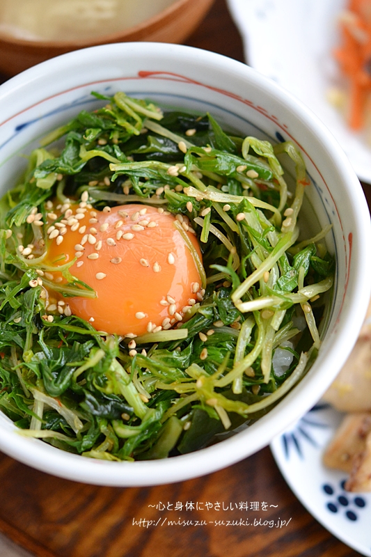 濃厚な黄身が、水菜とわかめのピリ辛ナムルと合わさり最高です〜♪