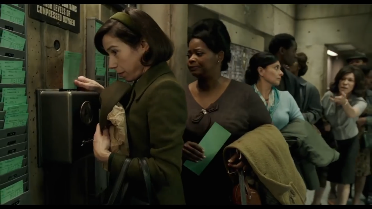 会社に設置されているタイムカードを切るシーンは何度も登場します。他にもイライザとジャイルズが時計を合わせるシーンも印象的でしたし、ストリックランドやホフテストラーはしきりに上司から「時間」を突きつけられます(詳しくは展開の重大なネタバレになるので避けます)。