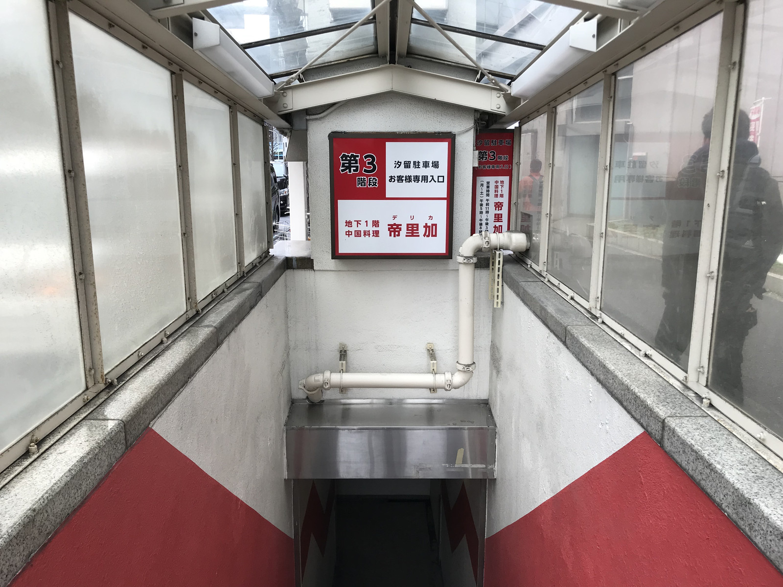 こちらがお店の入口…って、地下駐車場の入口?