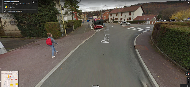 A peine plus loin vous voyez un bus, cette zone est celle ou les enfants du collège d'a coté traversent la route lors des sorties du collège mais ça ne semble pas déranger grand monde que cette zone soit si peu sécurisée, c'est la grand route du village ou il y a pas mal de traffic et j'ai jamais vu personne là assurer la sécurité au passages piétons lors des heures de sorties !