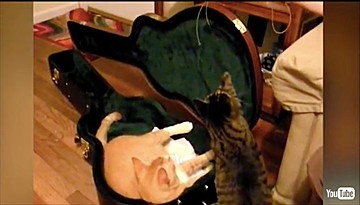 難しすぎたのか最後には天井を見るような角度になってしまったキジトラさん。脇を固めている黒猫さんの1匹は目をそらし、もう1匹はクールな表情で見つめているのがジワジワきます。