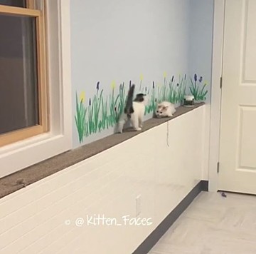 Twitterには他にも、階段を占拠する猫さんズや、黒猫チームとトラ猫チームにキレイに分かれて座る様子、洗面器の中でひなたぼっこをする姿などが投稿されています。