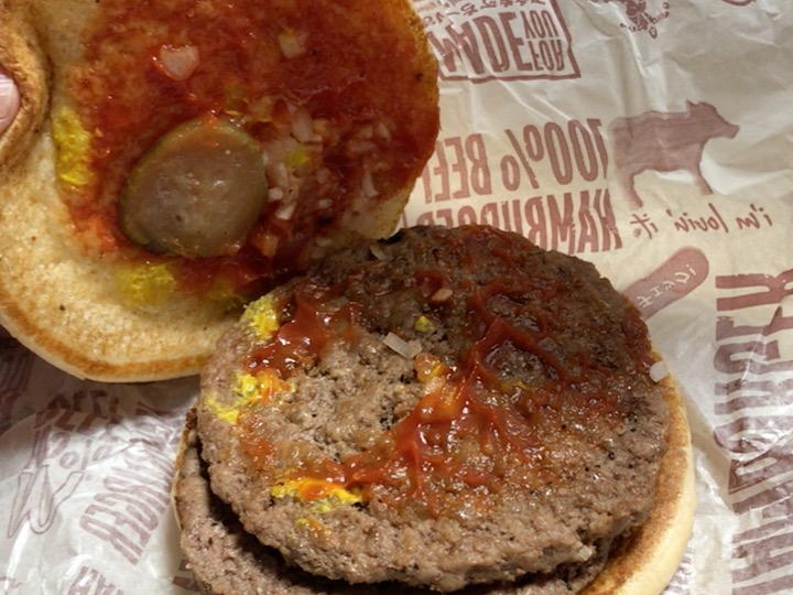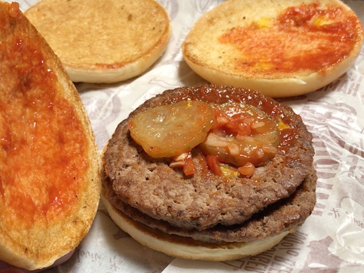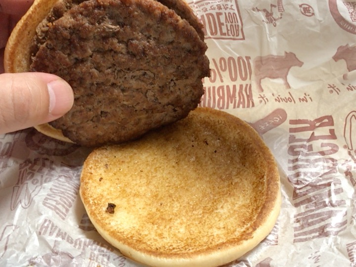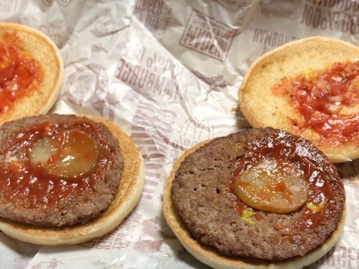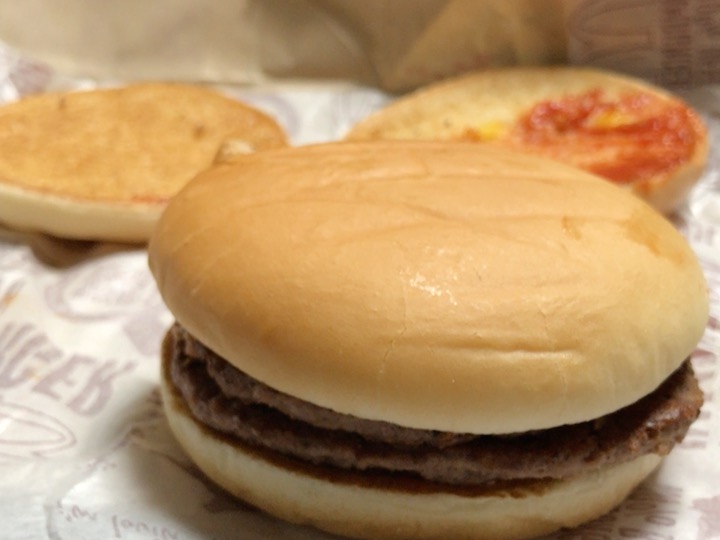 このパンとピクルスとケチャップと玉ねぎ分、ハンバーガー2個の方が絶対にお得です。