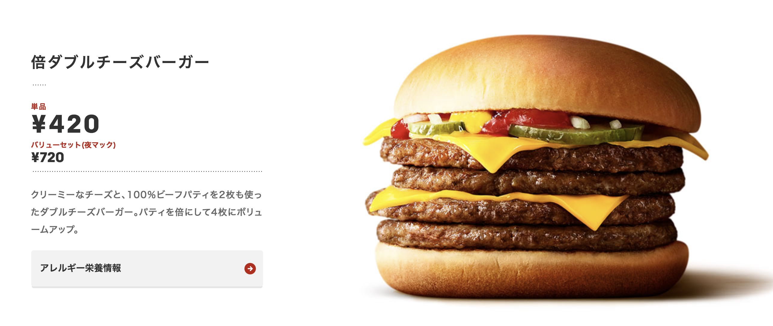 倍ダブルチーズバーガー…お得