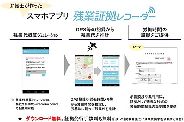 提供元はアプリ「残業証拠レコーダー」(関連記事)を手がける日本リーガルネットワーク。企業のなかには残業代の支払い義務があるにもかかわらず、「年俸制だから残業代を支払う必要はない」といった虚偽の説明をするところがあり、法的知識のない労働者がうそを信じてしまうケースがあると指摘しています。