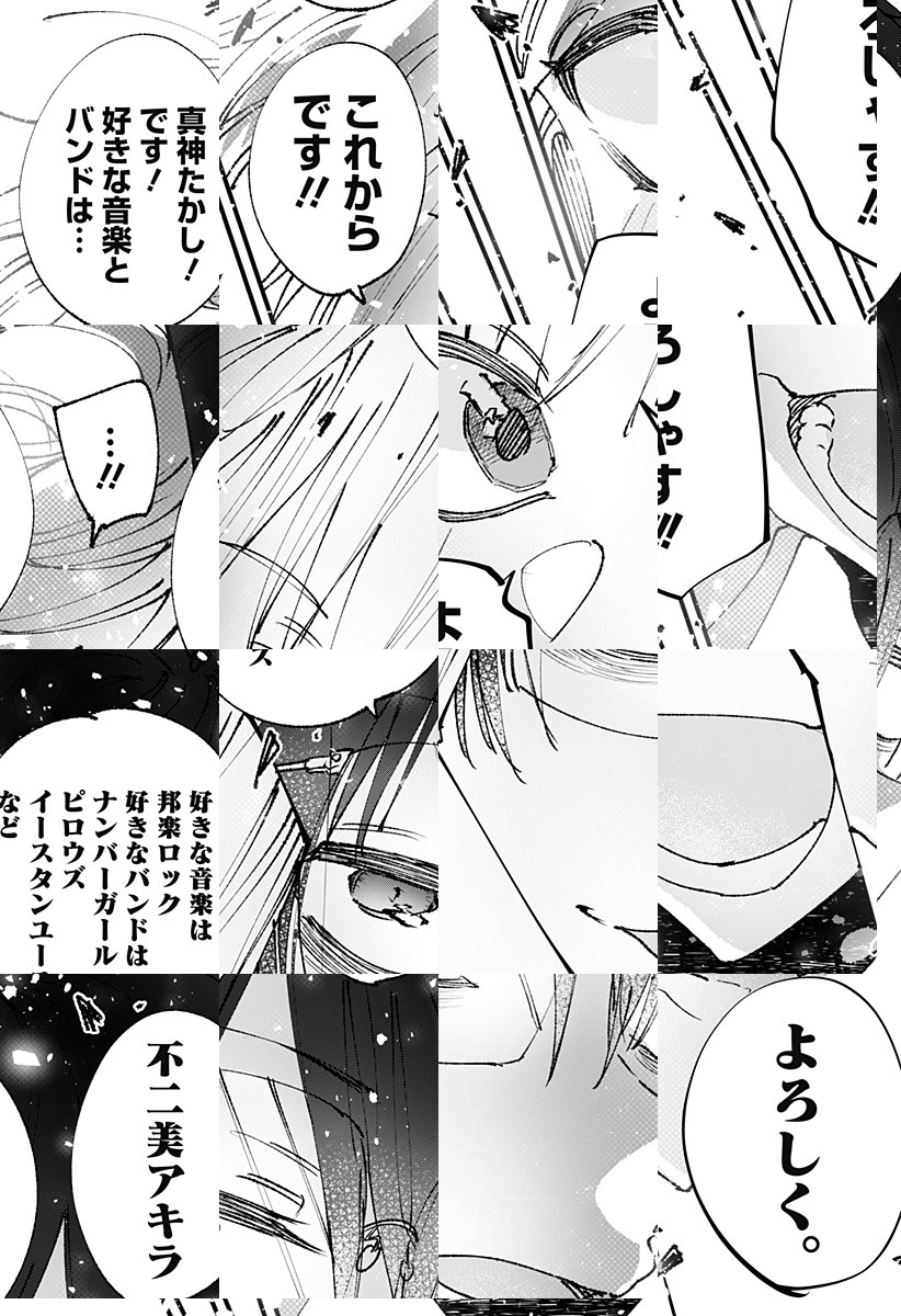 <毎週土曜更新>「ナンバーガールが義務教育」なオルタナ根暗ロック好き・アキラと打ち込めるものを探してる、ごくごく普通の少年・タカシ。正反対の二人の出会い。熱く、そして鬱屈としたロックな日々が始まる—!! [JC1巻6/4発売予定]
