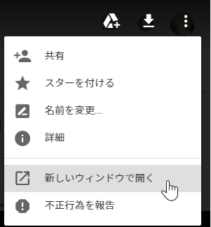 - 右上の︙(その他の操作)→、新しいウィンドウで開くを押す