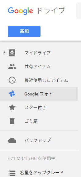 あとはマイドライブを開くと”Google フォト”というフォルダが作成されているのでそれを開けばいいわけです。