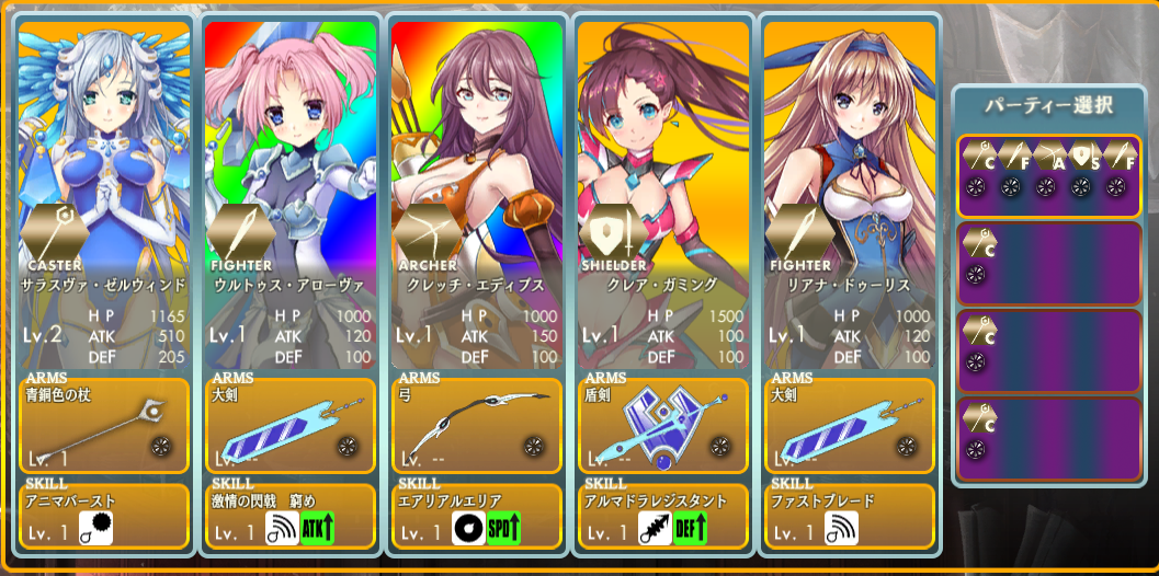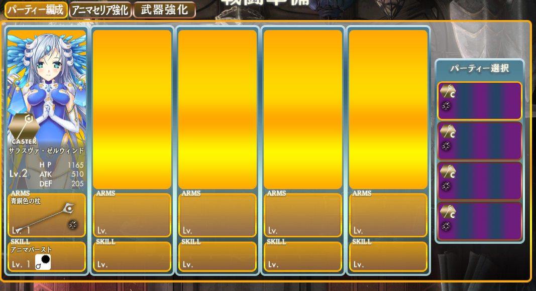 次はキャラ編成画面をみてみました
