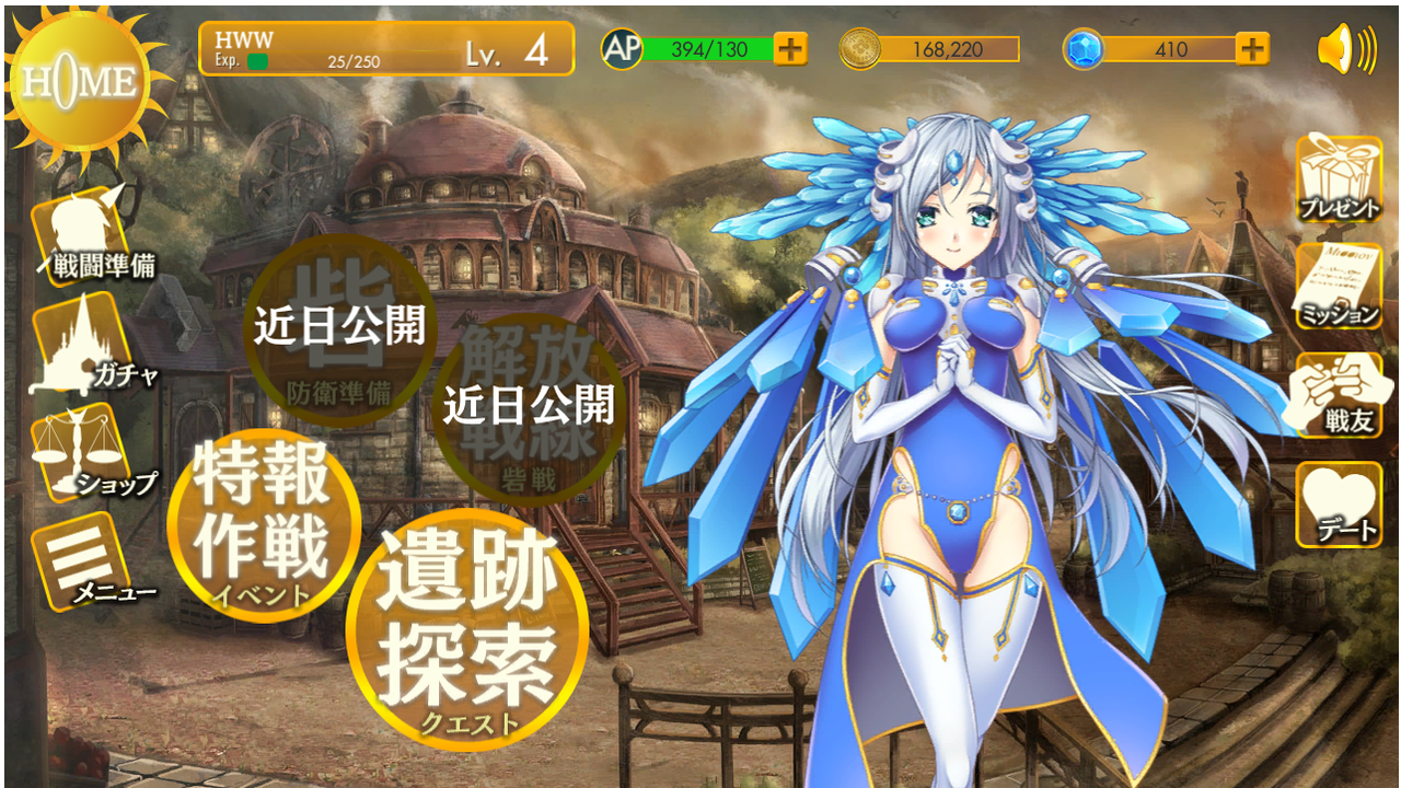 まず初めに僕は画面の上の方のAP(スタミナ)ゲージに目がいきました無料のFLASHゲーかな???