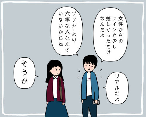 でもブッシーさんが不機嫌だから慌てて機嫌とった、って感じを想像してしまった。