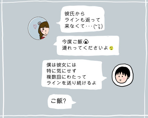 彼女から返事がなくても気にせずラインし続けるっていうだけでこの人やばい?もしかしてストーカー気質?って思うよね・・・ブッシーさん以外♪